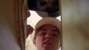 A jogger encounters a masked stranger in the woods, who insists she looks inside his briefcase.